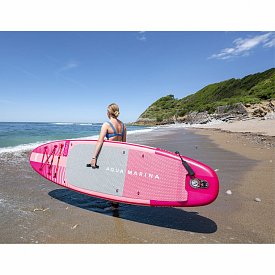 AQUA MARINA CORAL 10'2 malinová má oblý tvar a řadíme ho do kategorie malých univerzálních paddleboardů. Jeho délka je 310 cm, šířka 78 cm a výška 12 cm. Je určený především dámám, které ocení design. Patří do řady ALL-AROUND ADVANCED. Tato řada klade důraz na odolnost a vymazlený design. Například barevně sladěné pádlo, batoh i ploutvička s prknem. I další detaily se výrobci moc povedly.
