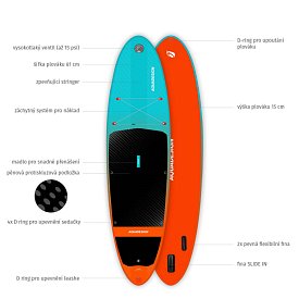 Nafukovací paddleboard AQUADESIGN Kendo 10´6 je prkno určené pro začátečníky i mírně pokročilé, jeho velikost z něj dělá ideální plovák pro rodinu, který umožní malým i velkým učit se a bavit se! Při poměrně kompaktní velikost nabízí velmi dobrou reaktivitu a bude vyhovovat všem členům rodiny. Jeho větší šířka - 84 cm - mu dodává skvělou stabilitu. Je ideální volbou pro rodinné použití u jezera nebo u moře.