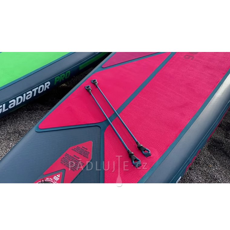 Řada paddleboardů GLADIATOR PRO je dodávána s bohatou výbavou, kvalitním pádlem, pěkným batohem s kolečky.