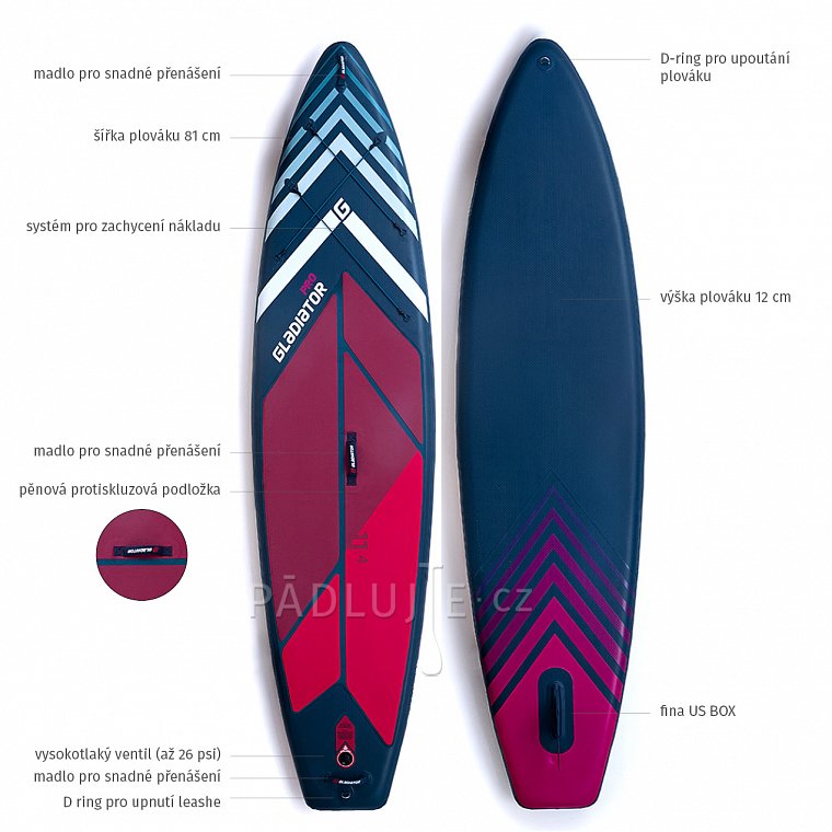 GLADIATOR PRO 11'4''x32''x5'' je touringový plovák v délce 347 cm. Díky šířce 81 cm je velmi stabilní, dobře akceleruje a skvěle drží směr.
