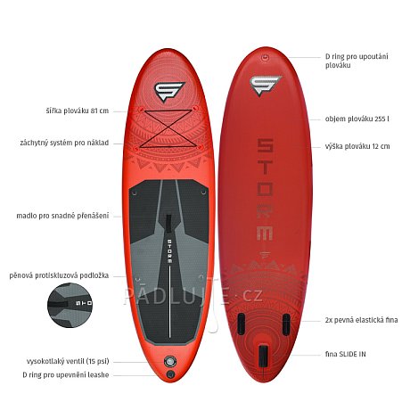 VAPOR je 15 cm vysoký paddleboard. Čím má plovák větší objem vzduch, tím má samozřejmě větší výtlak a tedy i nosnost.  Pokud vážíte do cca 60 kg volte spíš menší model BREEZE s výškou 12 cm, případně dámský model CORAL