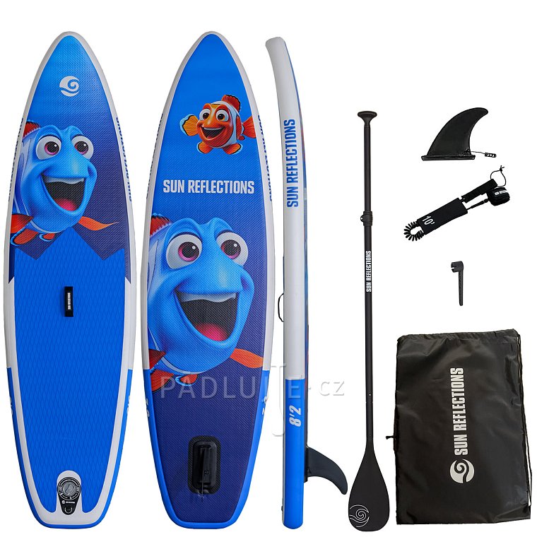 SUN REFLECTIONS 8'2'' je dětský paddleboard, který je postaven tak, aby jej mohli nejmladší paddleboardisté nejen sami ovládat, ale i sbalit a odnést. Je velmi lehký. Nafukovací paddleboard (SUP), vyrobený DROP-STITCH technologií je vybaven novým dětským pádlem.