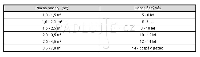 Univerzální oplachtění pro začínající windsurfery - vhodné pro děti (2m, 3m), juniory (3m, 4m) i pro dospělé jezdce (4m, 5m, 5,5m). Velikosti jsou v m2, tedy plocha plachty.