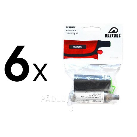 výhodný pack 6 ks sady pro znovuzprovoznění Restube Automatic. Obsahuje 6x originální náplň Restube CO2 a 6x spouštěcí jednotku pro spouštění při kontaktu s vodou.